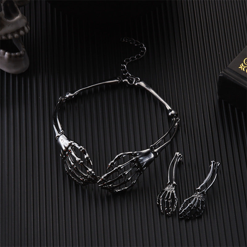 Skeleton hand choker with matching earrings