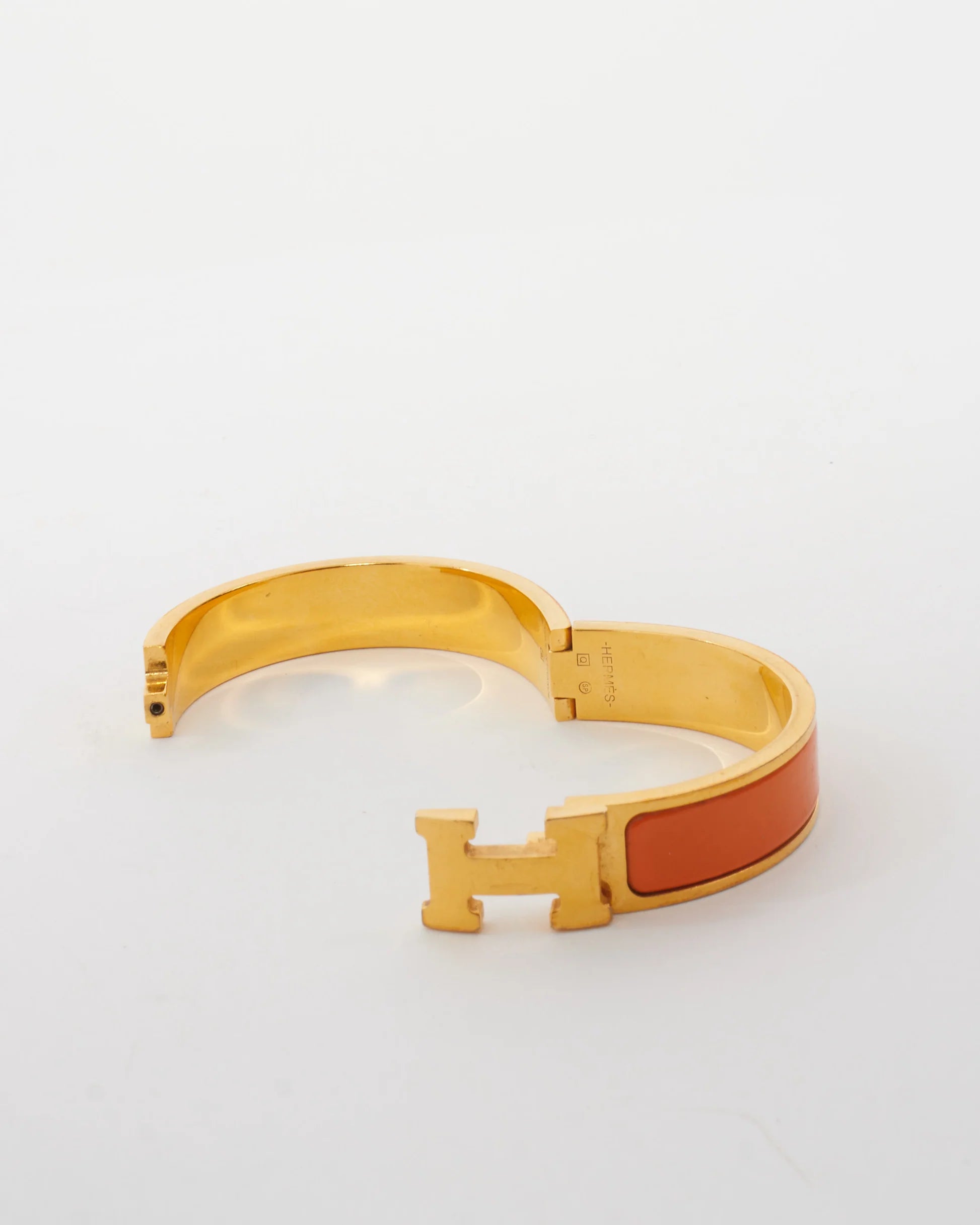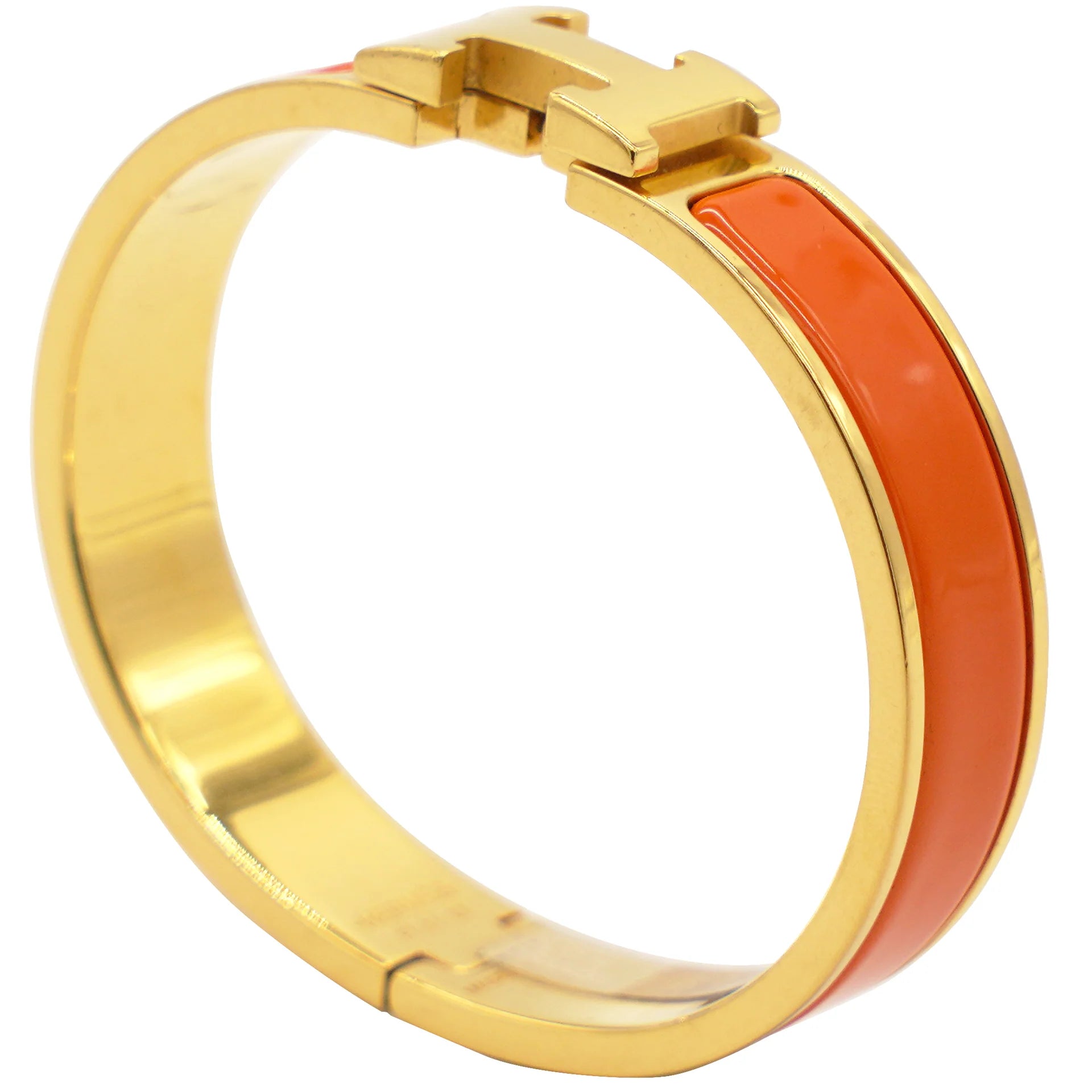 Radiate timeless elegance with this Hermès-inspired enamel H bracelet in a striking orange and gold finish. A symbol of effortless sophistication, this piece captures the essence of Parisian luxury with its sleek enamel detailing and signature H clasp.