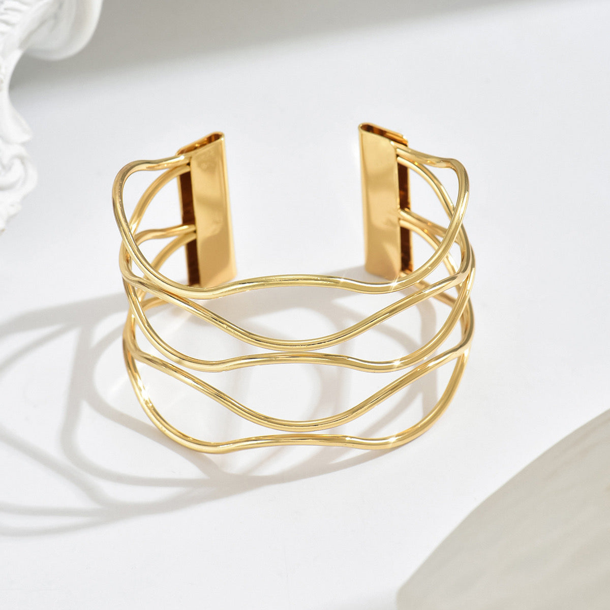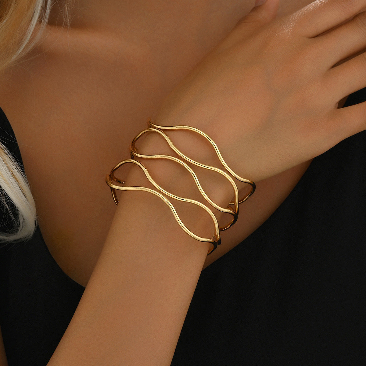 Elevate your accessory game with this stunning gold-plated Twisted Bracelet, intricately designed to give the illusion of wearing five separate bracelets while being a single, seamless piece. Its adjustable design ensures a comfortable fit for every wrist, while the gleaming gold plating adds a touch of sophistication. Perfectly versatile, it complements both traditional Indian ensembles and chic Western outfits, making it an effortless statement piece for weddings, parties, or everyday glam. Lightweight yet striking, this bracelet is the ultimate blend of style, convenience, and elegance.”